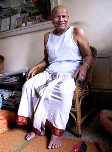 "Ashtanga Yoga is the system taught by Sri K Pattabhi Jois and his family in Mysore India. Through marrying the breath to the progressive series of postures, an intense inner heat floods the body and ultimately the practice becomes a pure and illuminating moving meditation. This I know: to stand on the mat in the liquid light, immersed in the deep and flowing breath of those around me, alive to the measured adjustments and murmured instructions of my teacher, is seductive."
